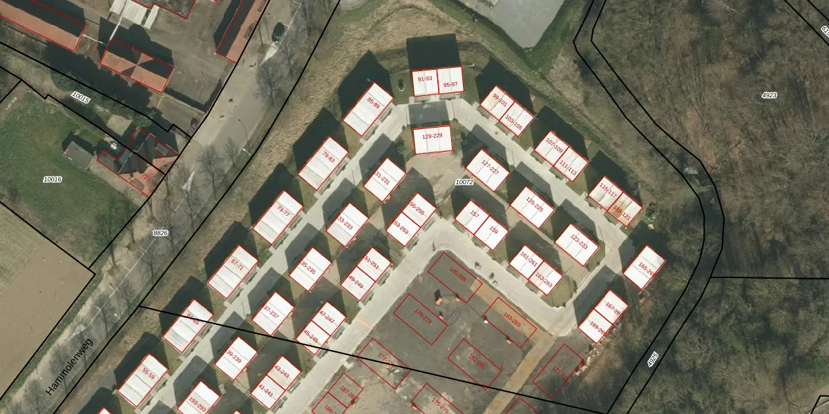 Hammolenweg 255 is gelegen op kadastraal perceel KRD00D10072. Deze kadastrale aanduiding is uniek en wordt gebruikt door het Kadaster om eigendomsrechten en andere zakelijke rechten vast te leggen. Het perceel maakt onderdeel uit van de kadastrale gemeente Kerkrade.