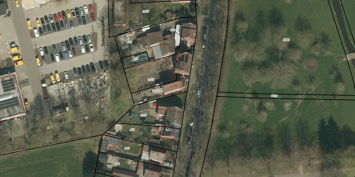 Hammolenweg 42 is gelegen op kadastraal perceel KRD00H2514. Deze kadastrale aanduiding is uniek en wordt gebruikt door het Kadaster om eigendomsrechten en andere zakelijke rechten vast te leggen. Het perceel maakt onderdeel uit van de kadastrale gemeente Kerkrade.