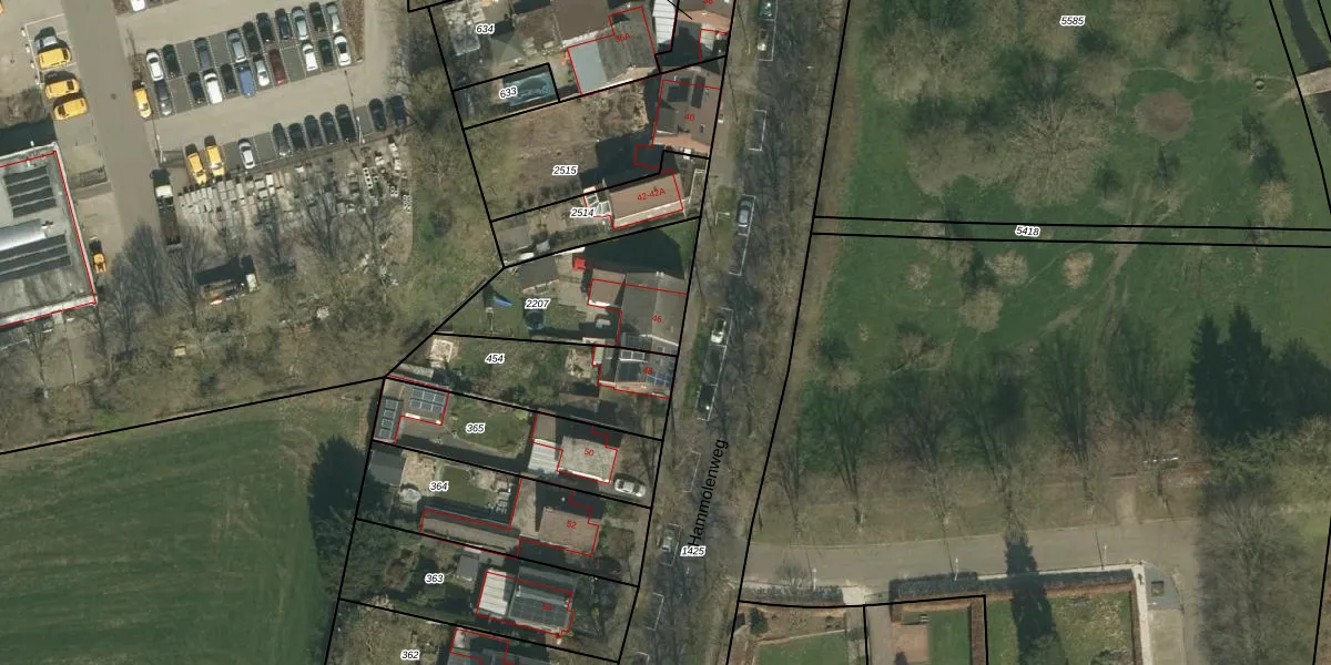 Hammolenweg 46 is gelegen op kadastraal perceel KRD00H2207. Deze kadastrale aanduiding is uniek en wordt gebruikt door het Kadaster om eigendomsrechten en andere zakelijke rechten vast te leggen. Het perceel maakt onderdeel uit van de kadastrale gemeente Kerkrade.