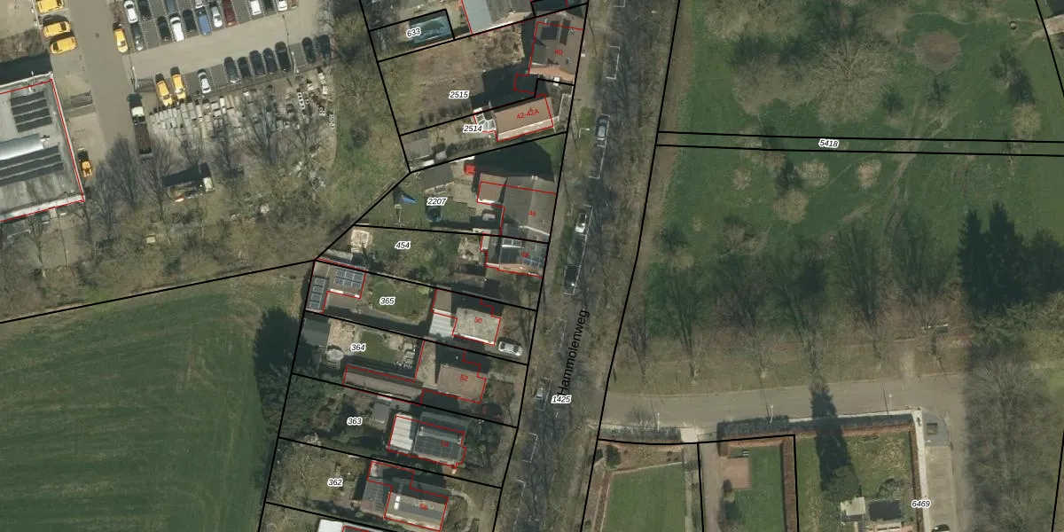 Hammolenweg 48 is gelegen op kadastraal perceel KRD00H454. Deze kadastrale aanduiding is uniek en wordt gebruikt door het Kadaster om eigendomsrechten en andere zakelijke rechten vast te leggen. Het perceel maakt onderdeel uit van de kadastrale gemeente Kerkrade.
