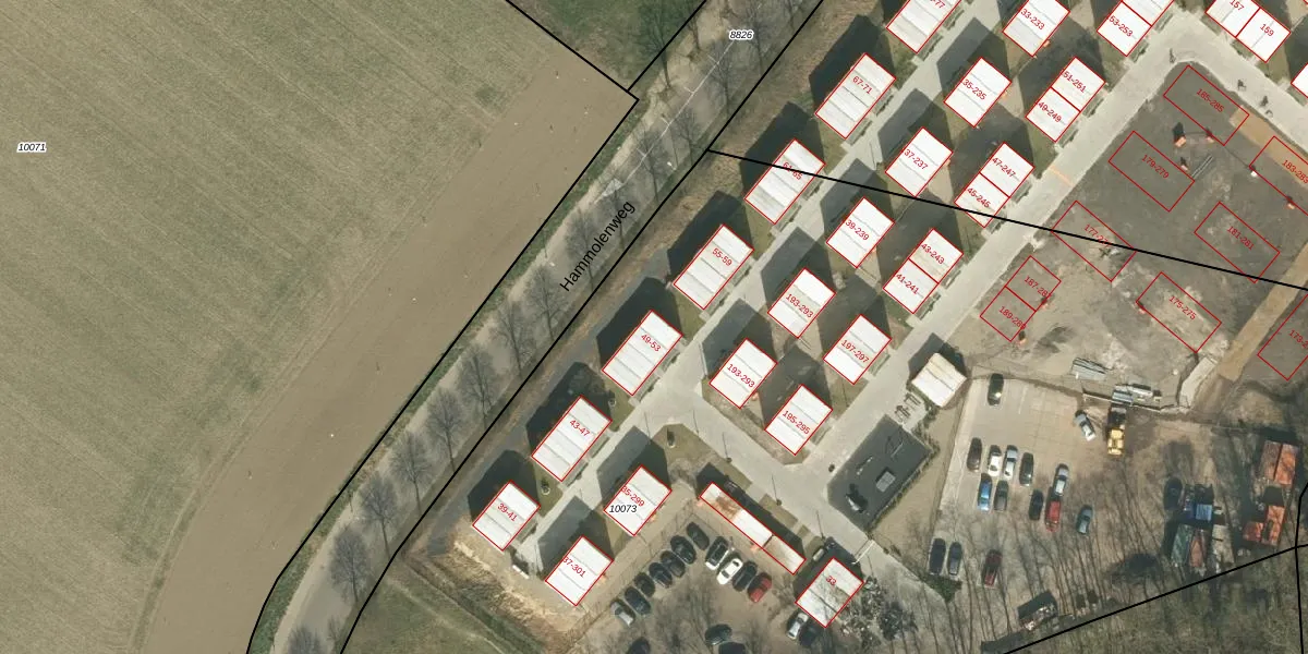 Het perceel waarop Hammolenweg 51 staat heeft een oppervlakte van 1,0 ha. Dit is een zeer groot perceel. De perceeloppervlakte wordt geregistreerd door het Kadaster. Gedetailleerde informatie over de maten van dit perceel kunt u vinden in het rapport Kadastrale kaart met maatvoering van Hammolenweg 51.