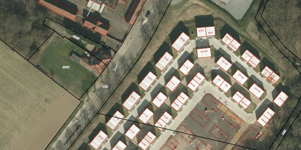 Het perceel waarop Hammolenweg 75 staat heeft een oppervlakte van 1,0 ha. Dit is een zeer groot perceel. De perceeloppervlakte wordt geregistreerd door het Kadaster. Gedetailleerde informatie over de maten van dit perceel kunt u vinden in het rapport Kadastrale kaart met maatvoering van Hammolenweg 75.