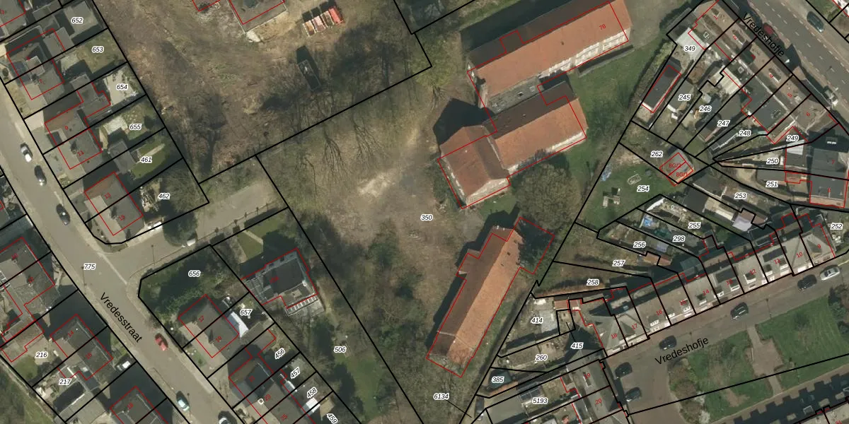 Het perceel waarop Heistraat 102 staat heeft een oppervlakte van 5916 m². Dit is een zeer groot perceel. De perceeloppervlakte wordt geregistreerd door het Kadaster. Gedetailleerde informatie over de maten van dit perceel kunt u vinden in het rapport Kadastrale kaart met maatvoering van Heistraat 102.