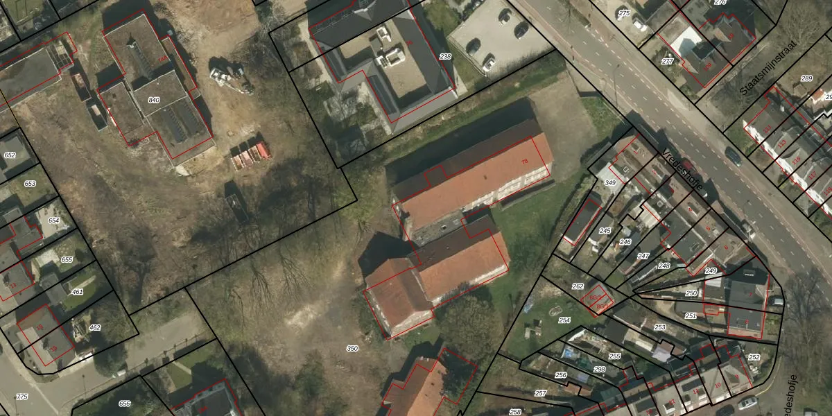 Het perceel waarop Heistraat 144 staat heeft een oppervlakte van 5916 m². Dit is een zeer groot perceel. De perceeloppervlakte wordt geregistreerd door het Kadaster. Gedetailleerde informatie over de maten van dit perceel kunt u vinden in het rapport Kadastrale kaart met maatvoering van Heistraat 144.