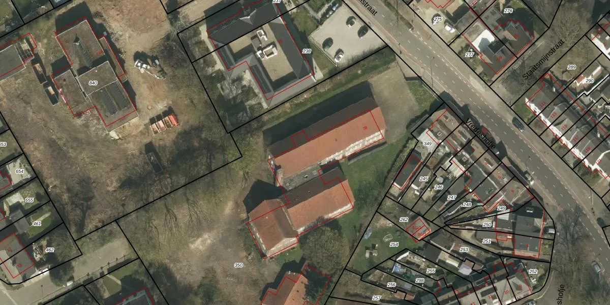 Het perceel waarop Heistraat 82 staat heeft een oppervlakte van 5916 m². Dit is een zeer groot perceel. De perceeloppervlakte wordt geregistreerd door het Kadaster. Gedetailleerde informatie over de maten van dit perceel kunt u vinden in het rapport Kadastrale kaart met maatvoering van Heistraat 82.