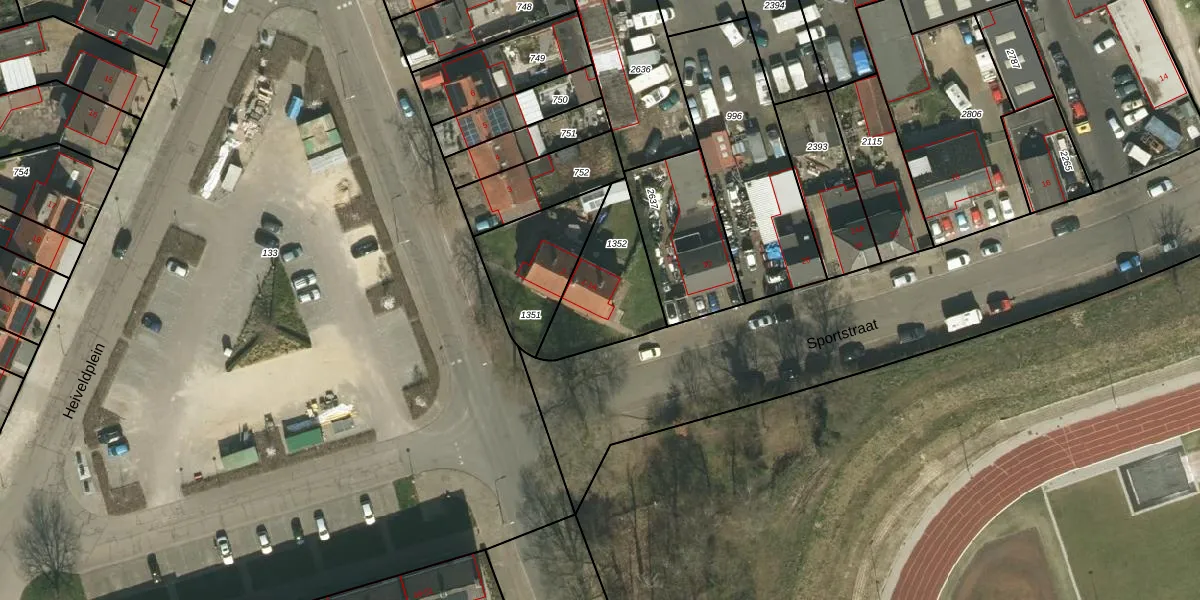 Heiveldplein 1 is gelegen op kadastraal perceel KRD00H1352. Deze kadastrale aanduiding is uniek en wordt gebruikt door het Kadaster om eigendomsrechten en andere zakelijke rechten vast te leggen. Het perceel maakt onderdeel uit van de kadastrale gemeente Kerkrade.