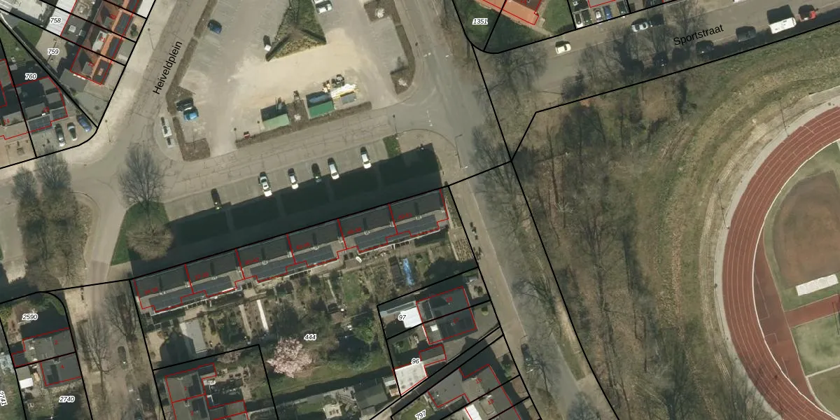 Het perceel waarop Heiveldplein 49 staat heeft een oppervlakte van 2593 m². Dit is een zeer groot perceel. De perceeloppervlakte wordt geregistreerd door het Kadaster. Gedetailleerde informatie over de maten van dit perceel kunt u vinden in het rapport Kadastrale kaart met maatvoering van Heiveldplein 49.
