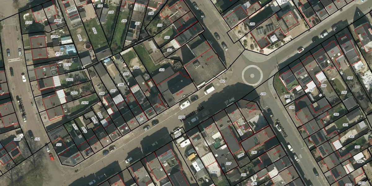 Het perceel waarop Heiveldstraat 56 staat heeft een oppervlakte van 590 m². Dit is een groot perceel. De perceeloppervlakte wordt geregistreerd door het Kadaster. Gedetailleerde informatie over de maten van dit perceel kunt u vinden in het rapport Kadastrale kaart met maatvoering van Heiveldstraat 56.