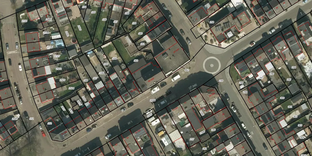 Het perceel waarop Heiveldstraat 56-A staat heeft een oppervlakte van 590 m². Dit is een groot perceel. De perceeloppervlakte wordt geregistreerd door het Kadaster. Gedetailleerde informatie over de maten van dit perceel kunt u vinden in het rapport Kadastrale kaart met maatvoering van Heiveldstraat 56-A.