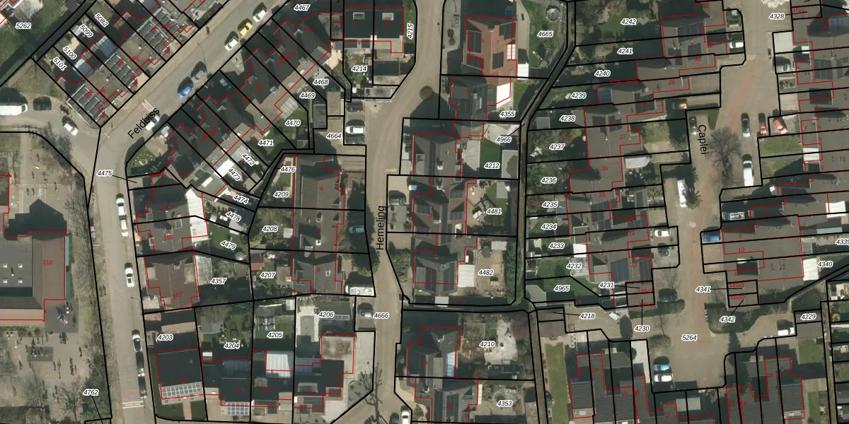 Het perceel waarop Hemeling 9 staat heeft een oppervlakte van 420 m². Dit is een groot perceel. De perceeloppervlakte wordt geregistreerd door het Kadaster. Gedetailleerde informatie over de maten van dit perceel kunt u vinden in het rapport Kadastrale kaart met maatvoering van Hemeling 9.