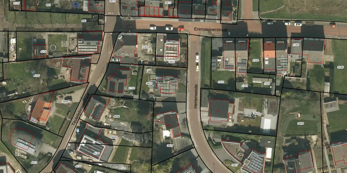 Het perceel waarop Hertenweide 15 staat heeft een oppervlakte van 530 m². Dit is een groot perceel. De perceeloppervlakte wordt geregistreerd door het Kadaster. Gedetailleerde informatie over de maten van dit perceel kunt u vinden in het rapport Kadastrale kaart met maatvoering van Hertenweide 15.