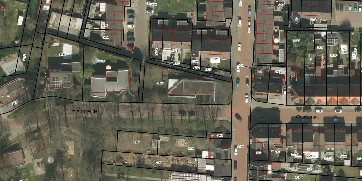 Hertenweide 2 is gelegen op kadastraal perceel KRD00G3440. Deze kadastrale aanduiding is uniek en wordt gebruikt door het Kadaster om eigendomsrechten en andere zakelijke rechten vast te leggen. Het perceel maakt onderdeel uit van de kadastrale gemeente Kerkrade.