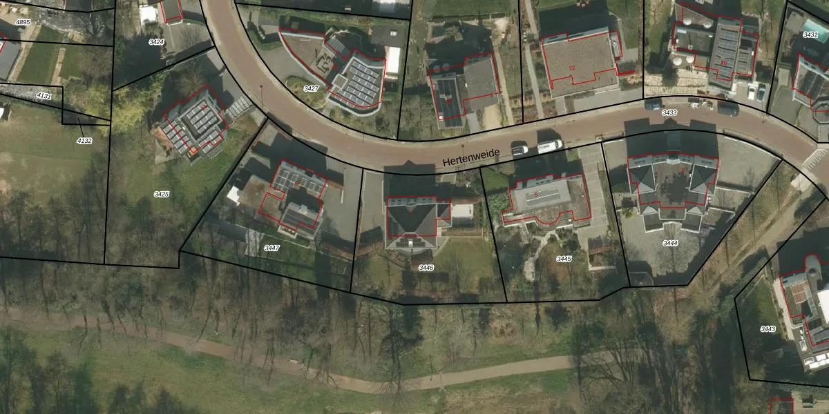 Het perceel waarop Hertenweide 7 staat heeft een oppervlakte van 1041 m². Dit is een zeer groot perceel. De perceeloppervlakte wordt geregistreerd door het Kadaster. Gedetailleerde informatie over de maten van dit perceel kunt u vinden in het rapport Kadastrale kaart met maatvoering van Hertenweide 7.