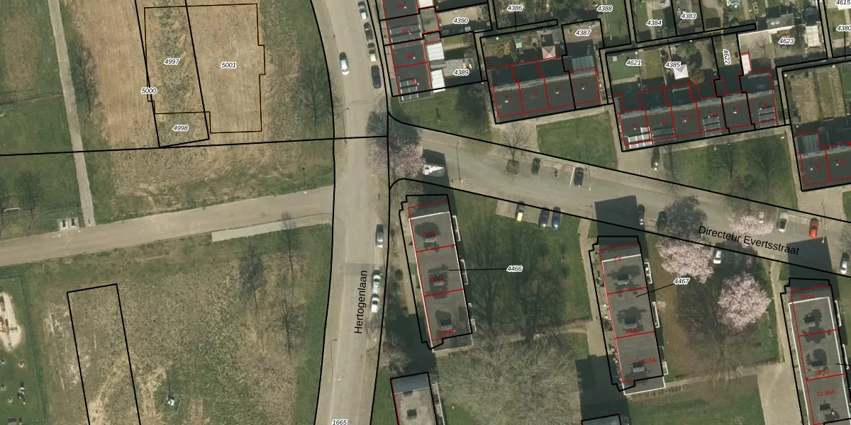 Hertogenlaan 76 is gelegen op kadastraal perceel KRD00G4466. Deze kadastrale aanduiding is uniek en wordt gebruikt door het Kadaster om eigendomsrechten en andere zakelijke rechten vast te leggen. Het perceel maakt onderdeel uit van de kadastrale gemeente Kerkrade.