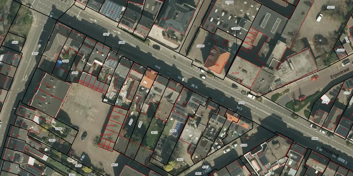 Het perceel waarop Holzstraat 20 staat heeft een oppervlakte van 447 m². Dit is een groot perceel. De perceeloppervlakte wordt geregistreerd door het Kadaster. Gedetailleerde informatie over de maten van dit perceel kunt u vinden in het rapport Kadastrale kaart met maatvoering van Holzstraat 20.