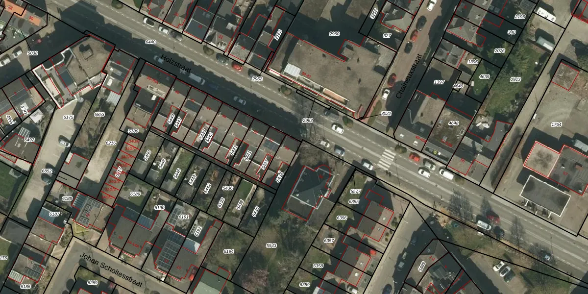 Holzstraat 54 is gelegen op kadastraal perceel KRD00E5434. Deze kadastrale aanduiding is uniek en wordt gebruikt door het Kadaster om eigendomsrechten en andere zakelijke rechten vast te leggen. Het perceel maakt onderdeel uit van de kadastrale gemeente Kerkrade.