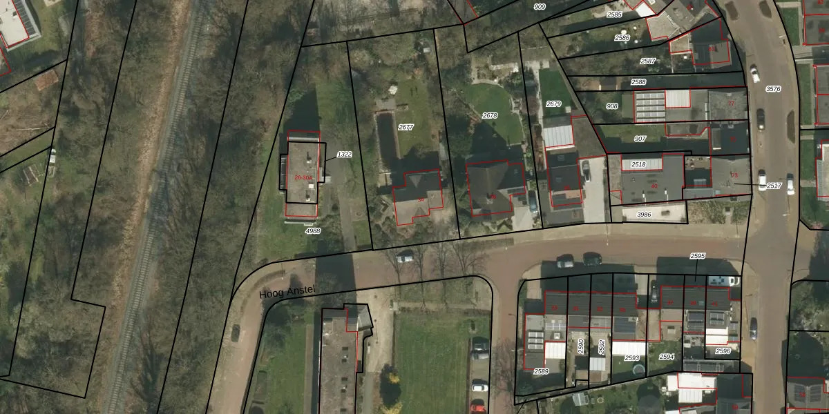 Het perceel waarop Hoog Anstel 34 staat heeft een oppervlakte van 1084 m². Dit is een zeer groot perceel. De perceeloppervlakte wordt geregistreerd door het Kadaster. Gedetailleerde informatie over de maten van dit perceel kunt u vinden in het rapport Kadastrale kaart met maatvoering van Hoog Anstel 34.