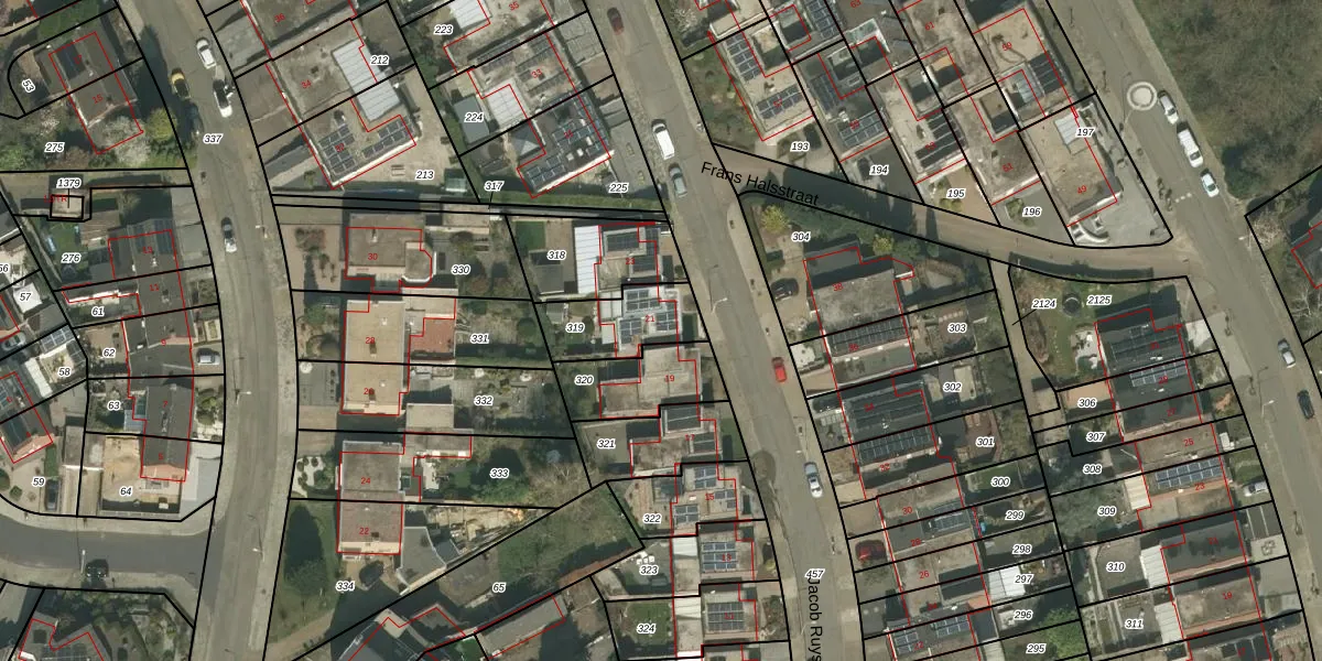 Jacob Ruysdaelstraat 21 is gelegen op kadastraal perceel KRD00L319. Deze kadastrale aanduiding is uniek en wordt gebruikt door het Kadaster om eigendomsrechten en andere zakelijke rechten vast te leggen. Het perceel maakt onderdeel uit van de kadastrale gemeente Kerkrade.