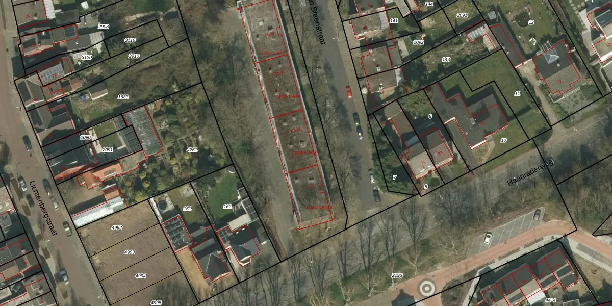 Het perceel waarop Jan Steenstraat 27 staat heeft een oppervlakte van 9385 m². Dit is een zeer groot perceel. De perceeloppervlakte wordt geregistreerd door het Kadaster. Gedetailleerde informatie over de maten van dit perceel kunt u vinden in het rapport Kadastrale kaart met maatvoering van Jan Steenstraat 27.