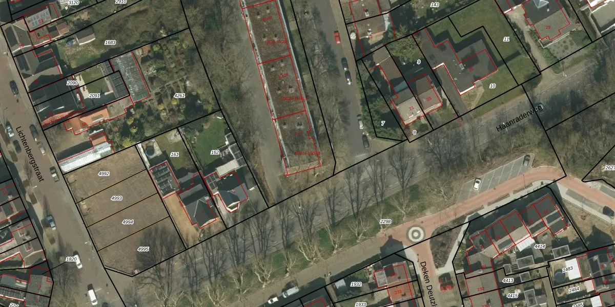 Het perceel waarop het adres ligt is KRD00-G-1851. De afkorting 'KRD00' staat voor kadastrale gemeente Kerkrade. De gemiddelde perceeloppervlakte in de kadastrale gemeente Kerkrade is 1061,22 m². Dit perceel is met zijn 9385 m² dus groter dan gemiddeld. Het grootste perceel in de kadastrale gemeente is 63,5 ha. Het kleinste perceel heeft een oppervlakte van 0 m². Op het perceel liggen in totaal 132 adressen. De huidige grenzen van het perceel zijn digitaal in de Basisregistratie Kadaster (BRK) geregistreerd op 05-12-2007.