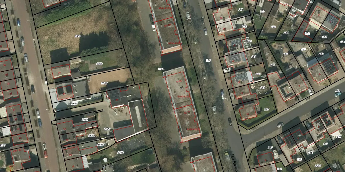 Het perceel waarop Jan Steenstraat 61-G-2 staat heeft een oppervlakte van 9385 m². Dit is een zeer groot perceel. De perceeloppervlakte wordt geregistreerd door het Kadaster. Gedetailleerde informatie over de maten van dit perceel kunt u vinden in het rapport Kadastrale kaart met maatvoering van Jan Steenstraat 61-G-2.