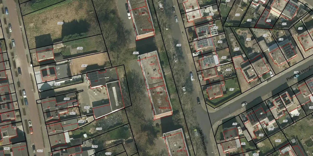 Het perceel waarop Jan Steenstraat 85 staat heeft een oppervlakte van 9385 m². Dit is een zeer groot perceel. De perceeloppervlakte wordt geregistreerd door het Kadaster. Gedetailleerde informatie over de maten van dit perceel kunt u vinden in het rapport Kadastrale kaart met maatvoering van Jan Steenstraat 85.