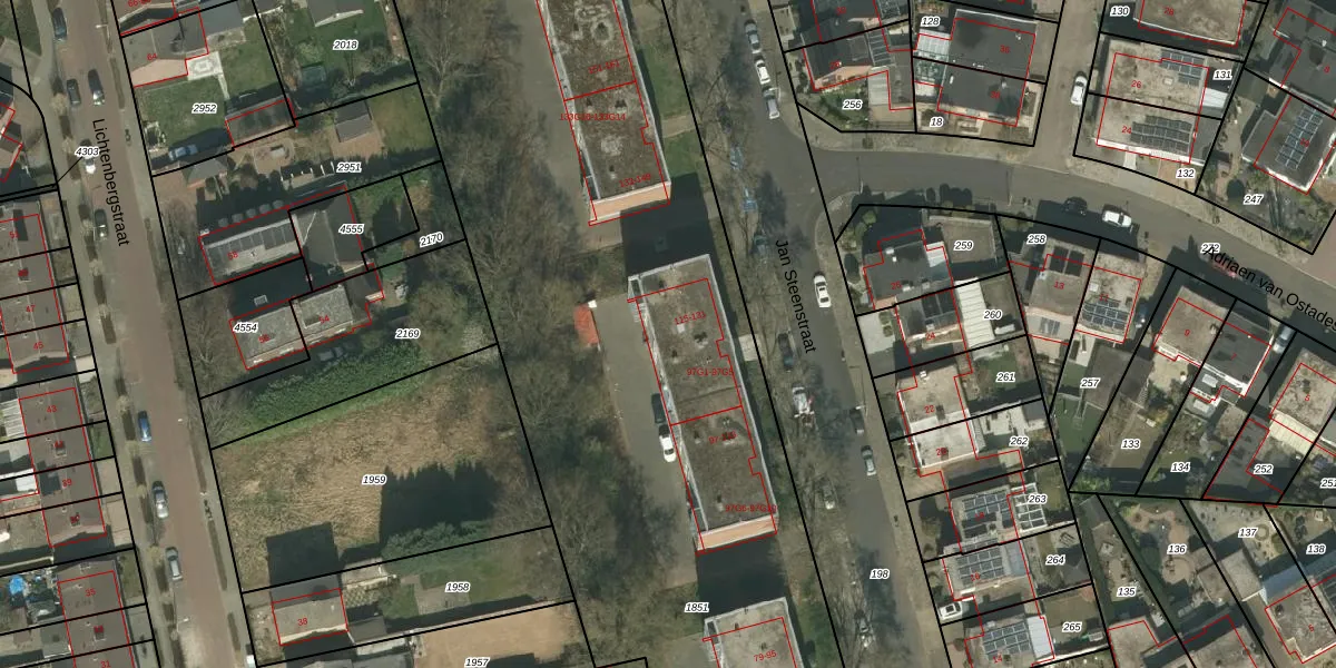 Het perceel waarop Jan Steenstraat 97-G-2 staat heeft een oppervlakte van 9385 m². Dit is een zeer groot perceel. De perceeloppervlakte wordt geregistreerd door het Kadaster. Gedetailleerde informatie over de maten van dit perceel kunt u vinden in het rapport Kadastrale kaart met maatvoering van Jan Steenstraat 97-G-2.