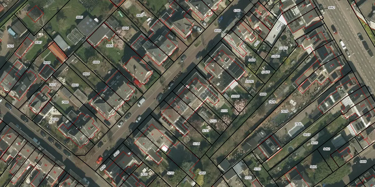 Het perceel waarop Julianastraat 14 staat heeft een oppervlakte van 228 m². Dit is een middelgroot perceel. De perceeloppervlakte wordt geregistreerd door het Kadaster. Gedetailleerde informatie over de maten van dit perceel kunt u vinden in het rapport Kadastrale kaart met maatvoering van Julianastraat 14.