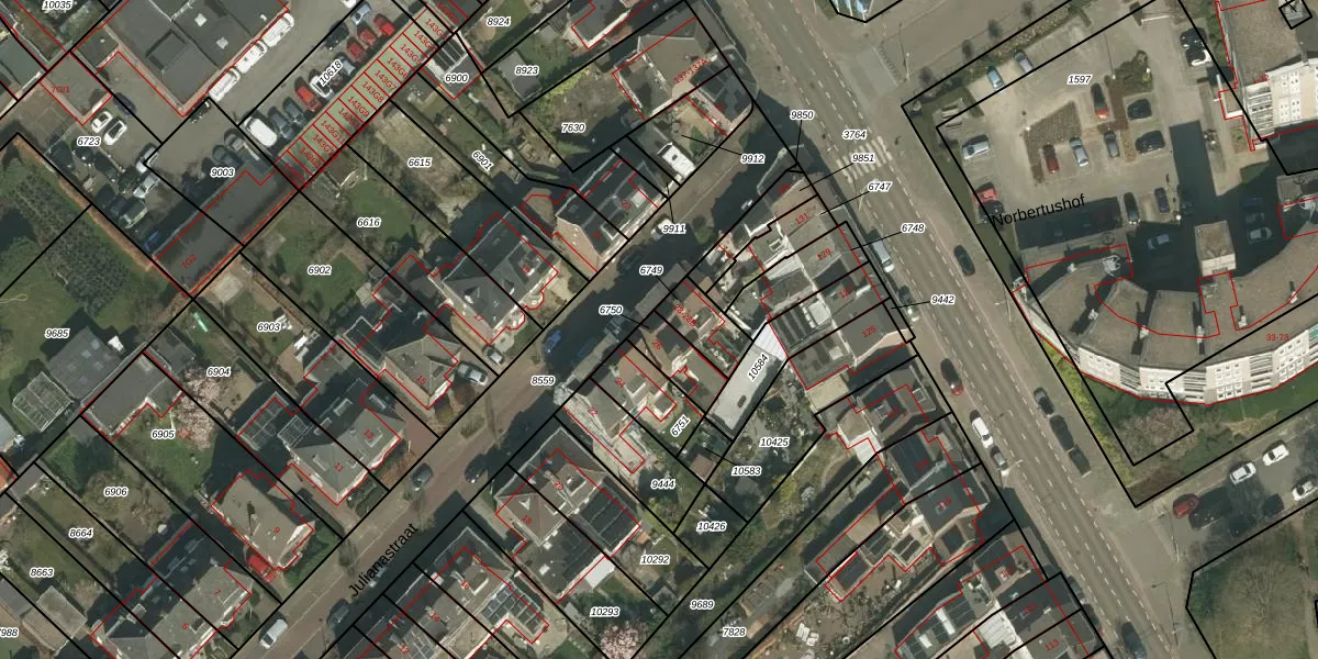 Julianastraat 26 is gelegen op kadastraal perceel KRD00B6750. Deze kadastrale aanduiding is uniek en wordt gebruikt door het Kadaster om eigendomsrechten en andere zakelijke rechten vast te leggen. Het perceel maakt onderdeel uit van de kadastrale gemeente Kerkrade.