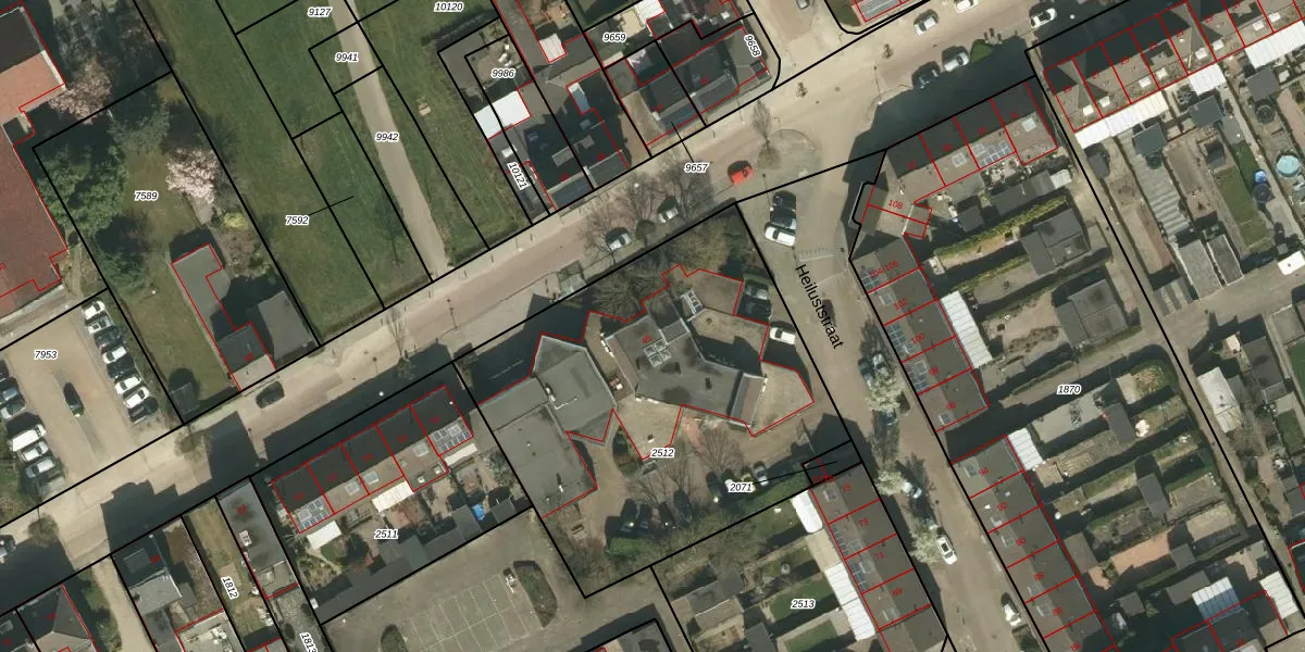 Gebruik de zoekbalk of klik op een perceel voor informatie over de adressen binnen dit perceel.