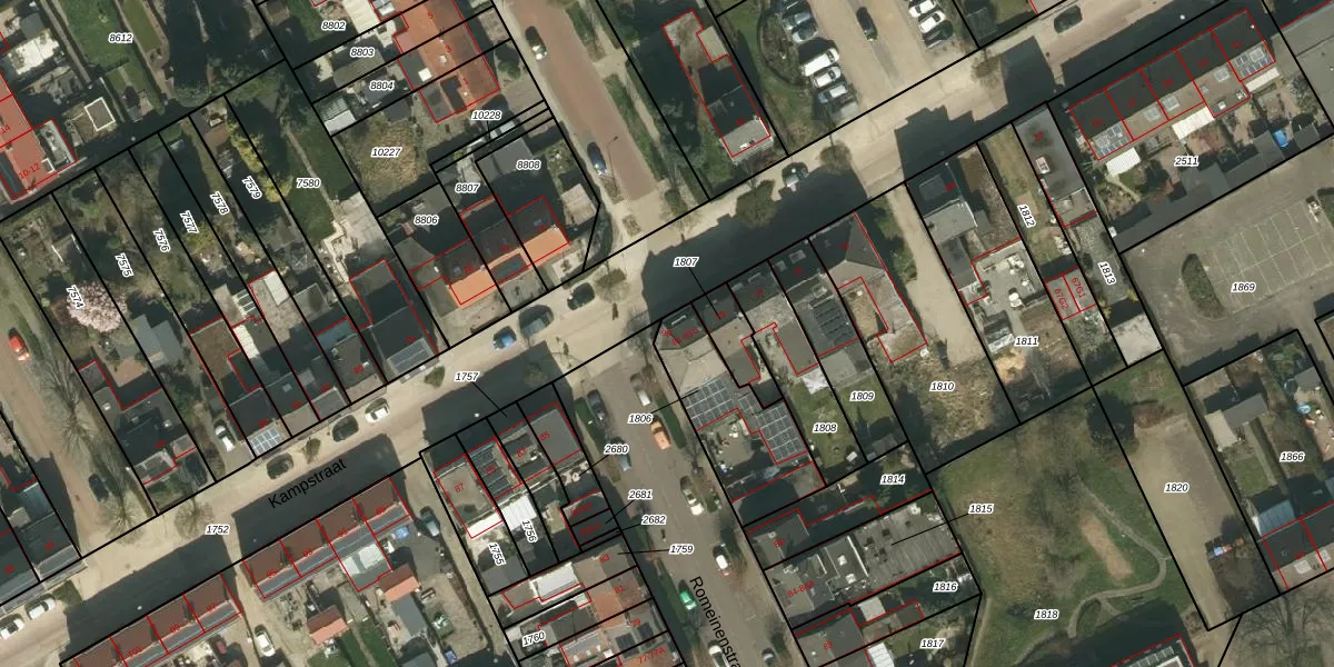 Het perceel waarop Kampstraat 81-C staat heeft een oppervlakte van 372 m². Dit is een groot perceel. De perceeloppervlakte wordt geregistreerd door het Kadaster. Gedetailleerde informatie over de maten van dit perceel kunt u vinden in het rapport Kadastrale kaart met maatvoering van Kampstraat 81-C.