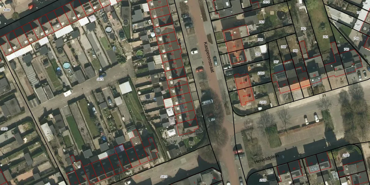 Kasperenstraat 53 is gelegen op kadastraal perceel KRD00H1871. Deze kadastrale aanduiding is uniek en wordt gebruikt door het Kadaster om eigendomsrechten en andere zakelijke rechten vast te leggen. Het perceel maakt onderdeel uit van de kadastrale gemeente Kerkrade.