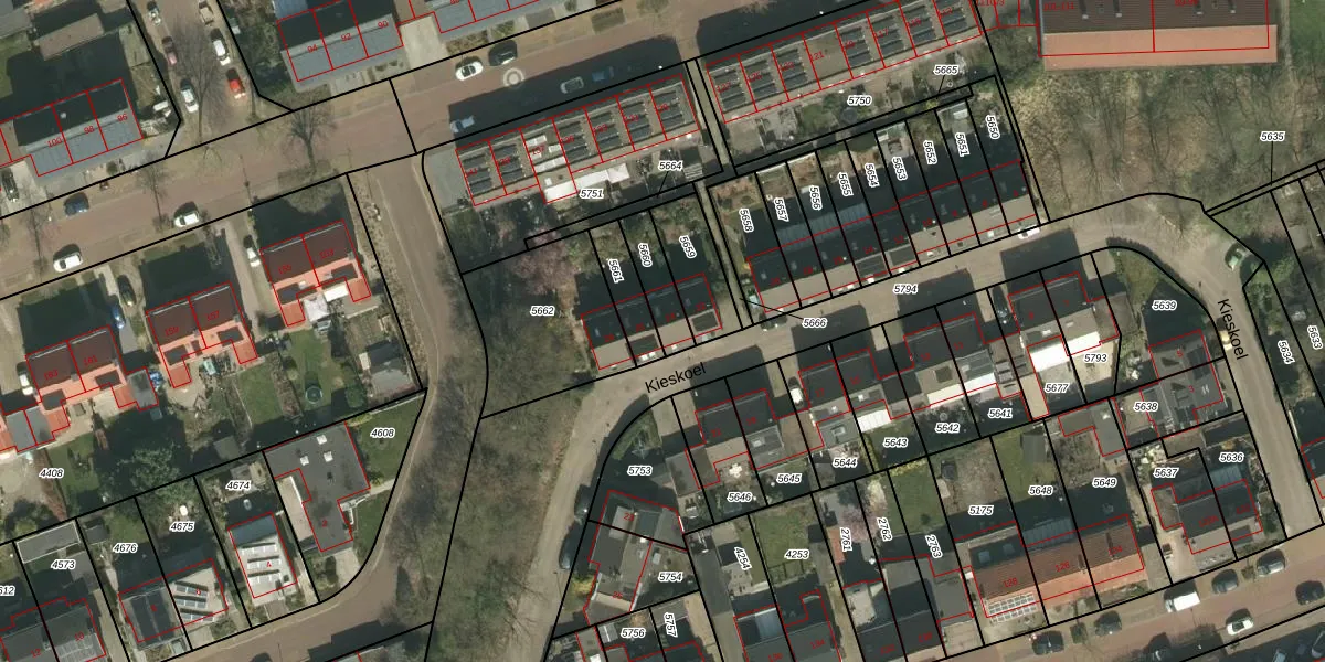 Kieskoel 24 is gelegen op kadastraal perceel KRD00E5660. Deze kadastrale aanduiding is uniek en wordt gebruikt door het Kadaster om eigendomsrechten en andere zakelijke rechten vast te leggen. Het perceel maakt onderdeel uit van de kadastrale gemeente Kerkrade.