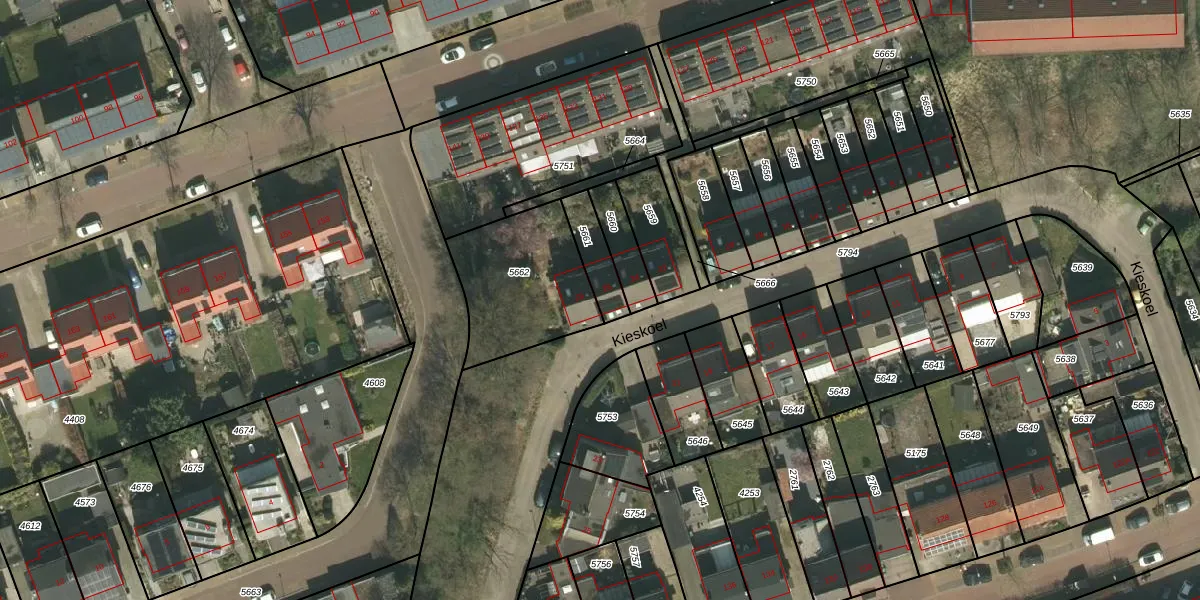 Het perceel waarop Kieskoel 26 staat heeft een oppervlakte van 106 m². Dit is een middelgroot perceel. De perceeloppervlakte wordt geregistreerd door het Kadaster. Gedetailleerde informatie over de maten van dit perceel kunt u vinden in het rapport Kadastrale kaart met maatvoering van Kieskoel 26.