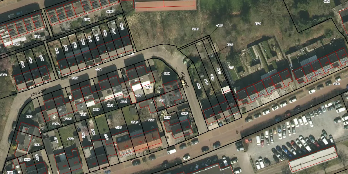Het perceel waarop Kieskoel 5 staat heeft een oppervlakte van 258 m². Dit is een middelgroot perceel. De perceeloppervlakte wordt geregistreerd door het Kadaster. Gedetailleerde informatie over de maten van dit perceel kunt u vinden in het rapport Kadastrale kaart met maatvoering van Kieskoel 5.