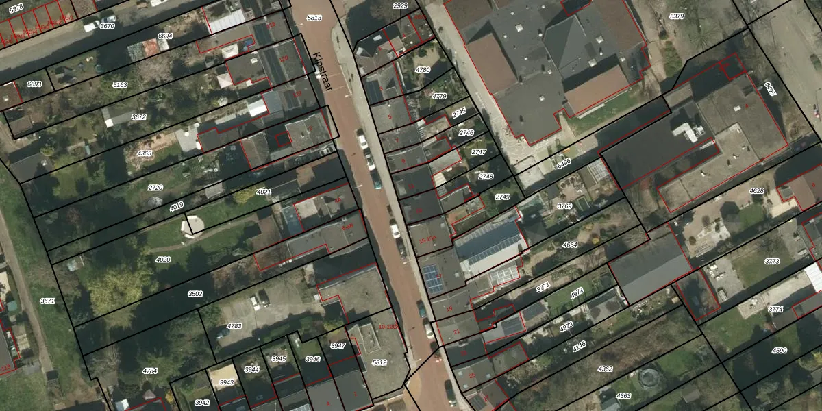 Kipstraat 13 is gelegen op kadastraal perceel KRD00E2748. Deze kadastrale aanduiding is uniek en wordt gebruikt door het Kadaster om eigendomsrechten en andere zakelijke rechten vast te leggen. Het perceel maakt onderdeel uit van de kadastrale gemeente Kerkrade.