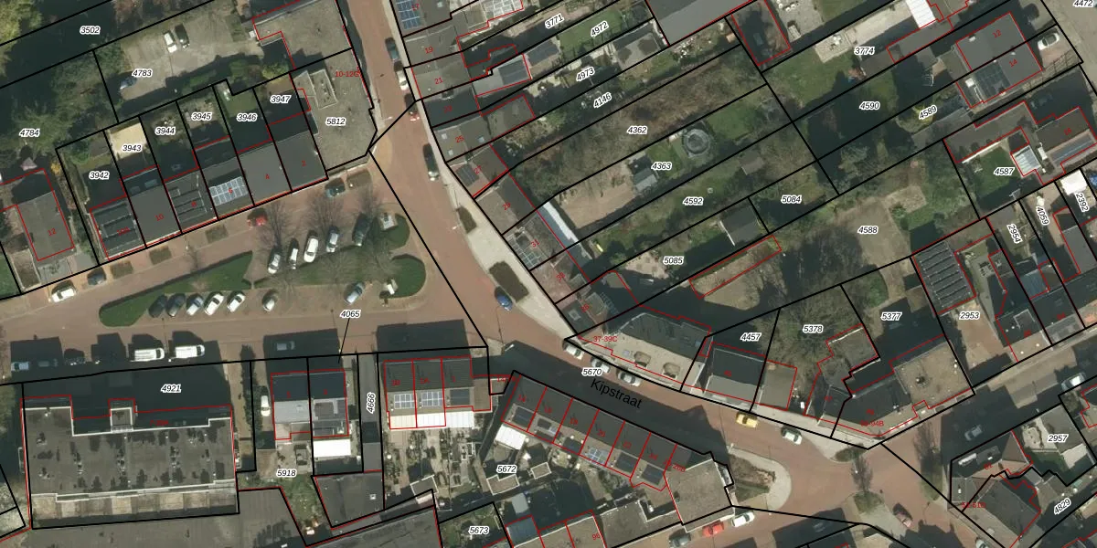 Kipstraat 33 is gelegen op kadastraal perceel KRD00E4592. Deze kadastrale aanduiding is uniek en wordt gebruikt door het Kadaster om eigendomsrechten en andere zakelijke rechten vast te leggen. Het perceel maakt onderdeel uit van de kadastrale gemeente Kerkrade.