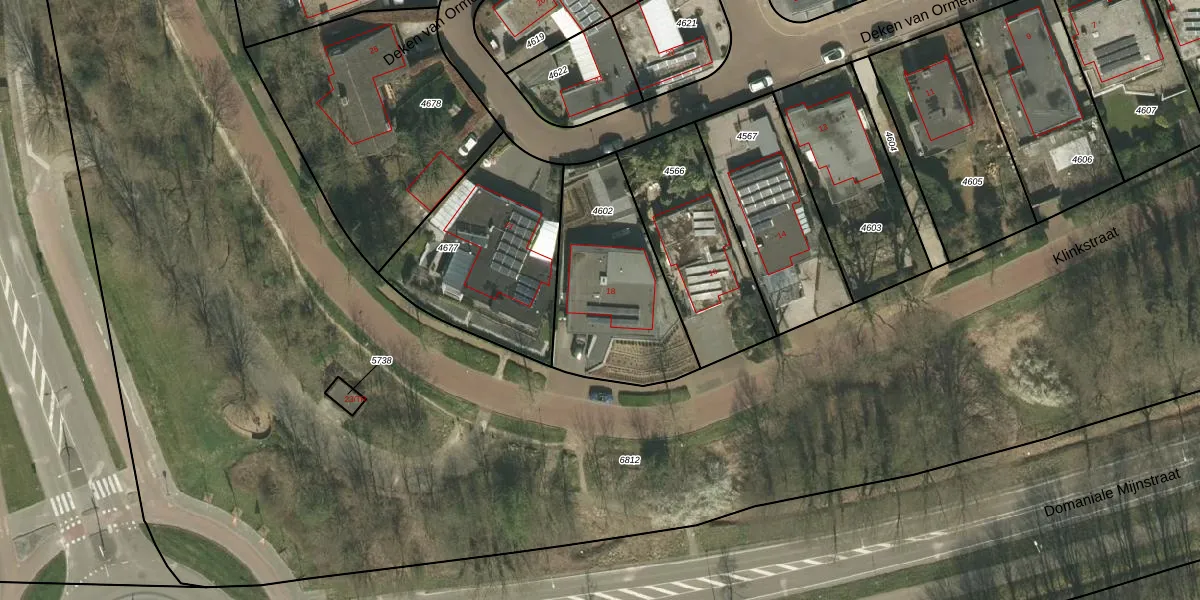 Klinkstraat 18 is gelegen op kadastraal perceel KRD00E4602. Deze kadastrale aanduiding is uniek en wordt gebruikt door het Kadaster om eigendomsrechten en andere zakelijke rechten vast te leggen. Het perceel maakt onderdeel uit van de kadastrale gemeente Kerkrade.