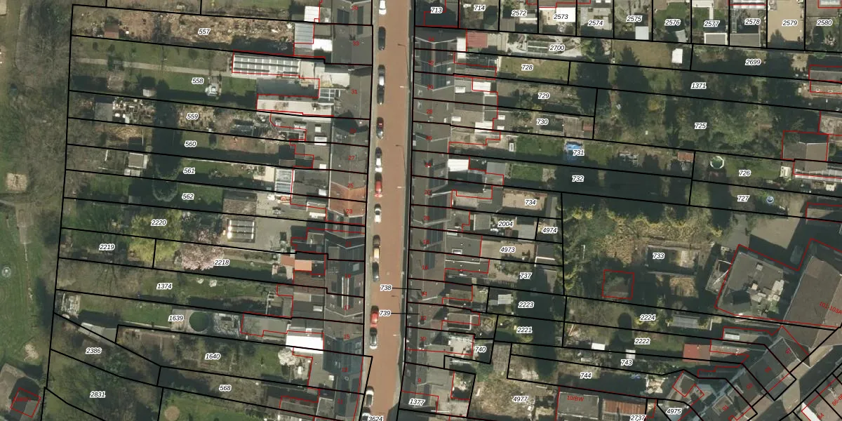 Het adres is gelegen op perceel 2004 in de sectie G en de kadastrale gemeente Kerkrade. De kadastrale aanduiding is aldus KRD00-G-2004. Het perceel is 166 m² groot. Dat is kleiner dan de gemiddelde perceeloppervlakte in Kerkrade, dat op 1059,54 m² ligt. De grootste perceeloppervlakte in de kadastrale gemeente is 63,5 ha. De kleinste oppervlakte bedraagt 0 m². Er zijn geen andere adressen aanwezig op het perceel. In de Basisregistratie Kadaster (BRK) werden de grenzen van het perceel geregistreerd op 29-06-2023.