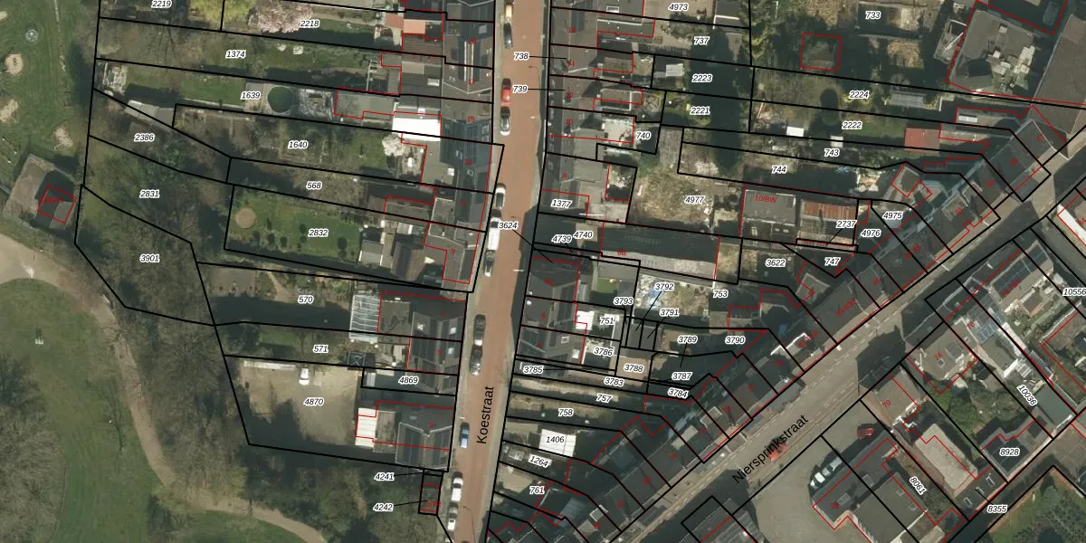 Koestraat 6-A is gelegen op kadastraal perceel KRD00G3624. Deze kadastrale aanduiding is uniek en wordt gebruikt door het Kadaster om eigendomsrechten en andere zakelijke rechten vast te leggen. Het perceel maakt onderdeel uit van de kadastrale gemeente Kerkrade.