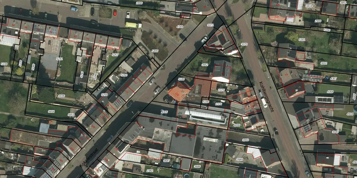 Gebruik de zoekbalk of klik op een perceel voor informatie over de adressen binnen dit perceel.