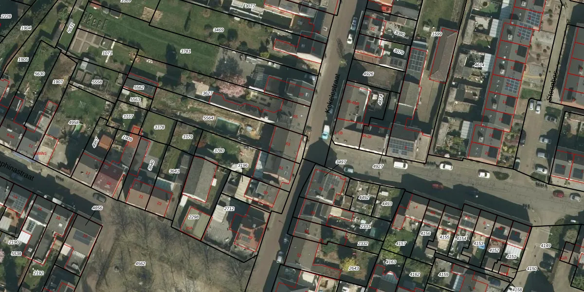 Kokelestraat 63 is gelegen op kadastraal perceel KRD00F5564. Deze kadastrale aanduiding is uniek en wordt gebruikt door het Kadaster om eigendomsrechten en andere zakelijke rechten vast te leggen. Het perceel maakt onderdeel uit van de kadastrale gemeente Kerkrade.