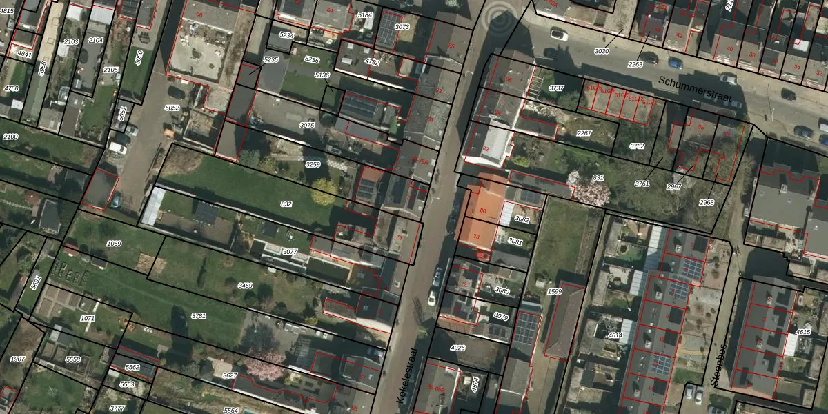 Het perceel waarop Kokelestraat 77 staat heeft een oppervlakte van 472 m². Dit is een groot perceel. De perceeloppervlakte wordt geregistreerd door het Kadaster. Gedetailleerde informatie over de maten van dit perceel kunt u vinden in het rapport Kadastrale kaart met maatvoering van Kokelestraat 77.
