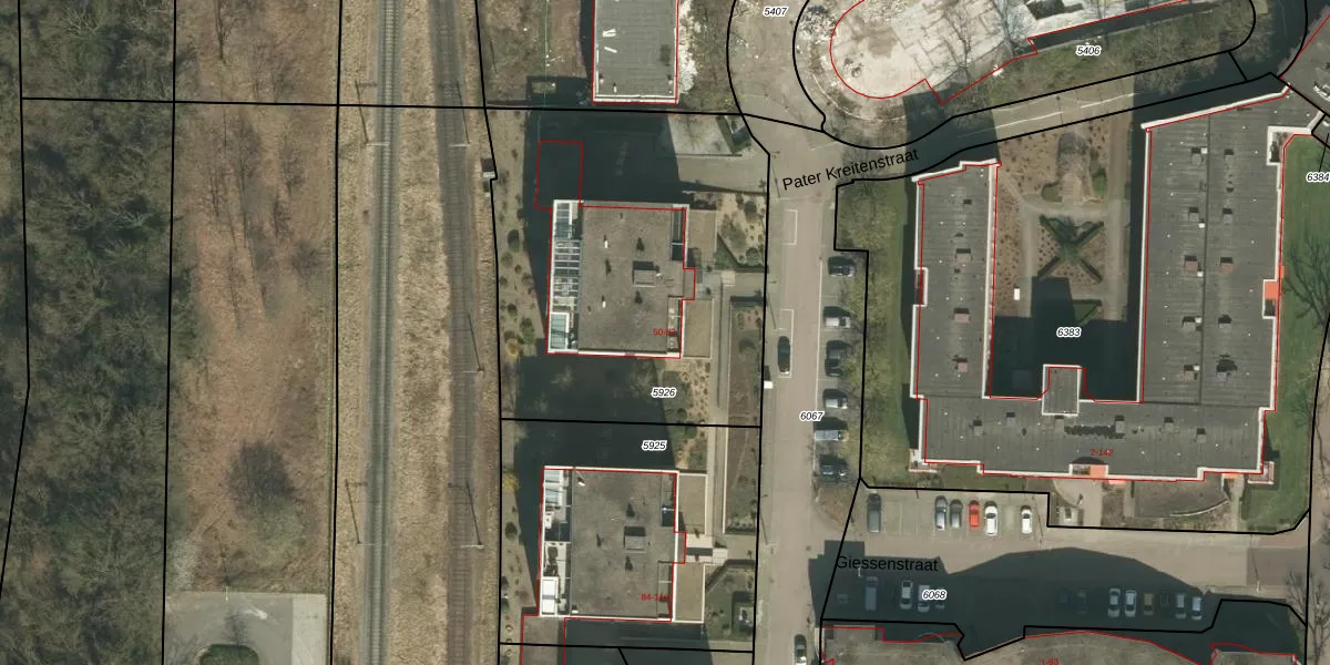 Het adres is gelegen op perceel 5926 in de sectie E en de kadastrale gemeente Kerkrade. De kadastrale aanduiding is aldus KRD00-E-5926. De gemiddelde perceeloppervlakte in de kadastrale gemeente Kerkrade is 1059,54 m². Dit perceel is met zijn 1888 m² dus groter dan gemiddeld. Het grootste perceel in de kadastrale gemeente is 63,5 ha. Het kleinste perceel heeft een oppervlakte van 0 m². Op het perceel zijn 17 adressen aanwezig. De huidige grenzen van het perceel zijn digitaal in de Basisregistratie Kadaster (BRK) geregistreerd op 13-12-2007.