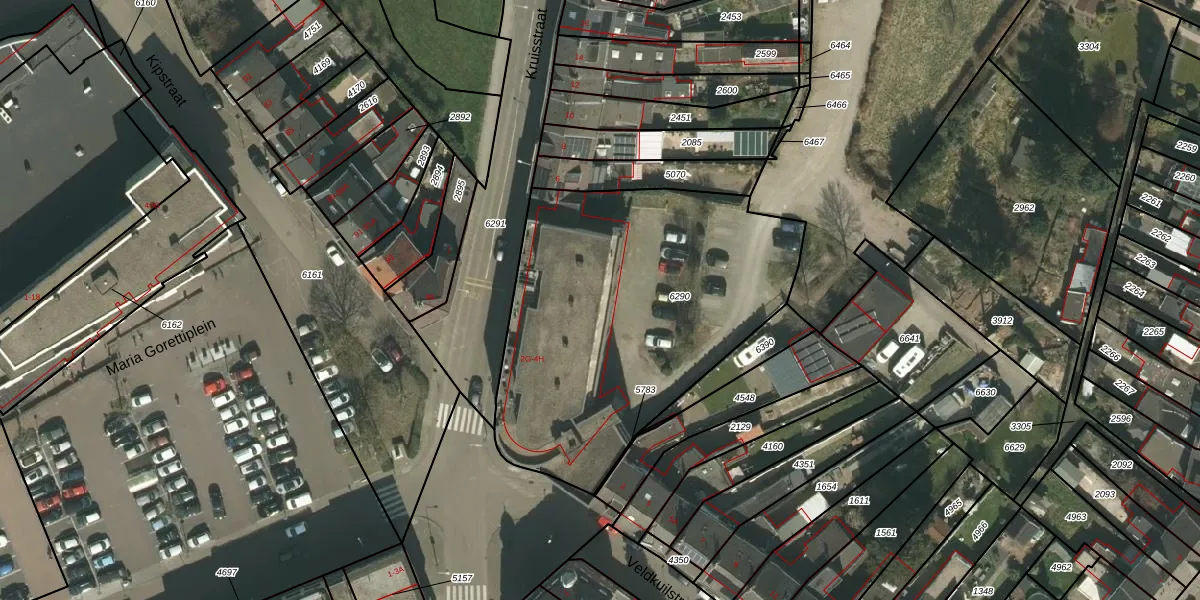 Kruisstraat 2-G-4 is gelegen op kadastraal perceel KRD00E6290. Deze kadastrale aanduiding is uniek en wordt gebruikt door het Kadaster om eigendomsrechten en andere zakelijke rechten vast te leggen. Het perceel maakt onderdeel uit van de kadastrale gemeente Kerkrade.