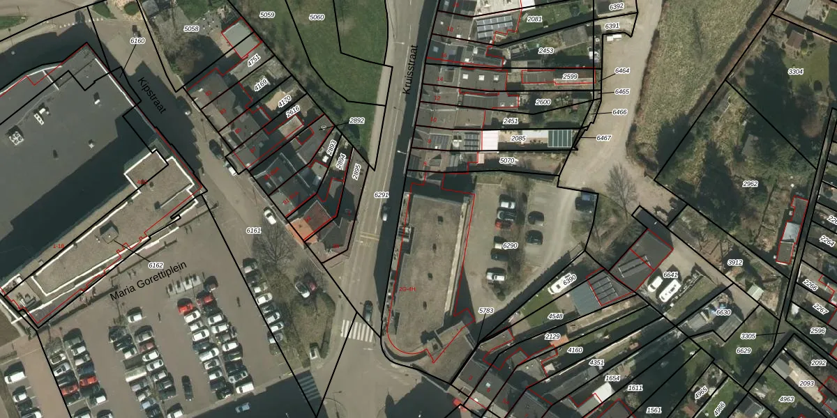 Kruisstraat 4-D is gelegen op kadastraal perceel KRD00E6290. Deze kadastrale aanduiding is uniek en wordt gebruikt door het Kadaster om eigendomsrechten en andere zakelijke rechten vast te leggen. Het perceel maakt onderdeel uit van de kadastrale gemeente Kerkrade.