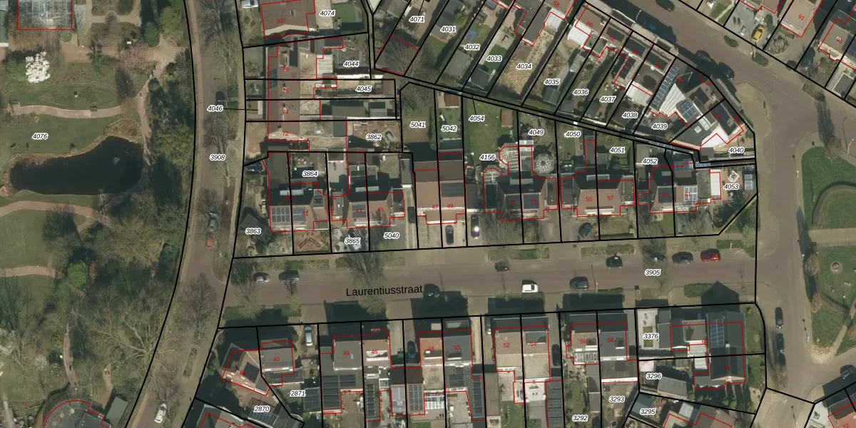 Laurentiusstraat 47 is gelegen op kadastraal perceel KRD00A5041. Deze kadastrale aanduiding is uniek en wordt gebruikt door het Kadaster om eigendomsrechten en andere zakelijke rechten vast te leggen. Het perceel maakt onderdeel uit van de kadastrale gemeente Kerkrade.