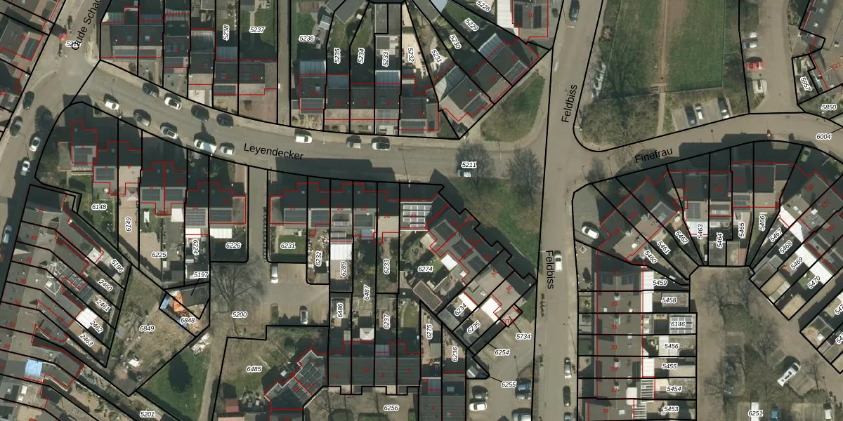 Het perceel waarop Leyendecker 26 staat heeft een oppervlakte van 607 m². Dit is een groot perceel. De perceeloppervlakte wordt geregistreerd door het Kadaster. Gedetailleerde informatie over de maten van dit perceel kunt u vinden in het rapport Kadastrale kaart met maatvoering van Leyendecker 26.