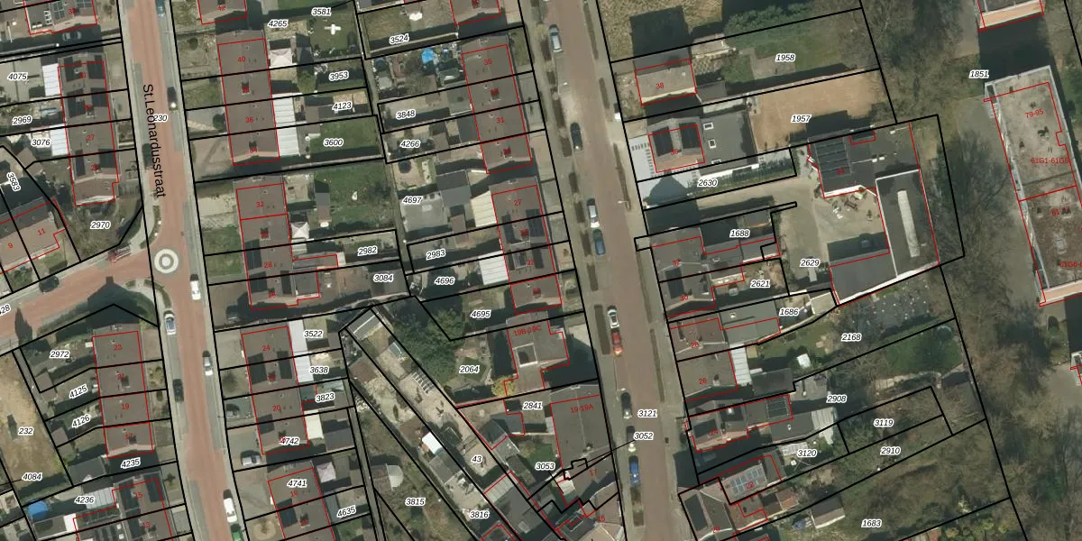 Het adres is gelegen op perceel 4696 in de sectie G en de kadastrale gemeente Kerkrade. De kadastrale aanduiding is aldus KRD00-G-4696. Het perceel is kleiner dan gemiddeld in Kerkrade. Het perceel is 166 m² groot, terwijl het gemiddelde ligt op 1061,22 m². De grootste perceeloppervlakte in de kadastrale gemeente is 63,5 ha. De kleinste oppervlakte bedraagt 0 m². Dit is het enige adres dat aanwezig is op het perceel. De huidige grenzen van het perceel zijn digitaal in de Basisregistratie Kadaster (BRK) geregistreerd op 13-10-2016.