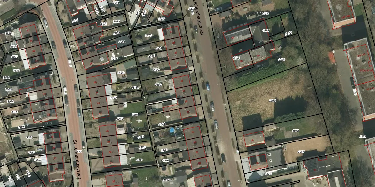 Het perceel waarop Lichtenbergstraat 41 staat heeft een oppervlakte van 965 m². Dit is een groot perceel. De perceeloppervlakte wordt geregistreerd door het Kadaster. Gedetailleerde informatie over de maten van dit perceel kunt u vinden in het rapport Kadastrale kaart met maatvoering van Lichtenbergstraat 41.